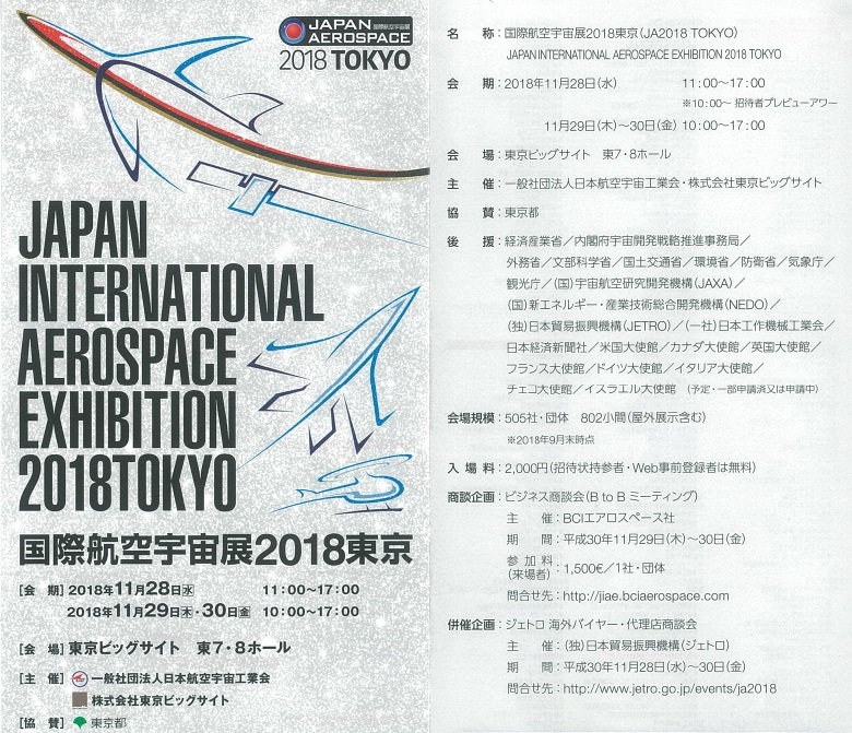 We will exhibit at the Japan international Aerospace Exhibition 2018 Tokyo